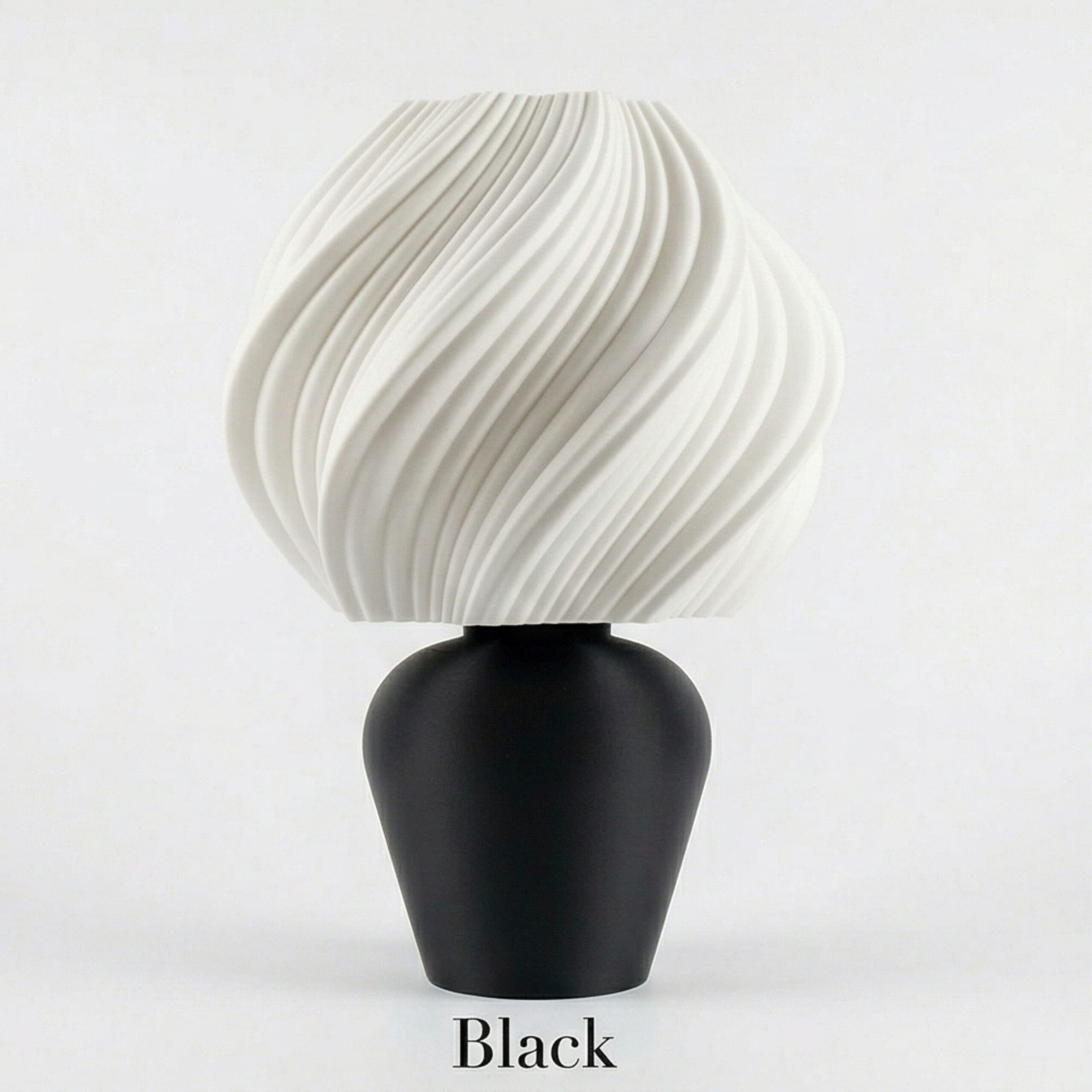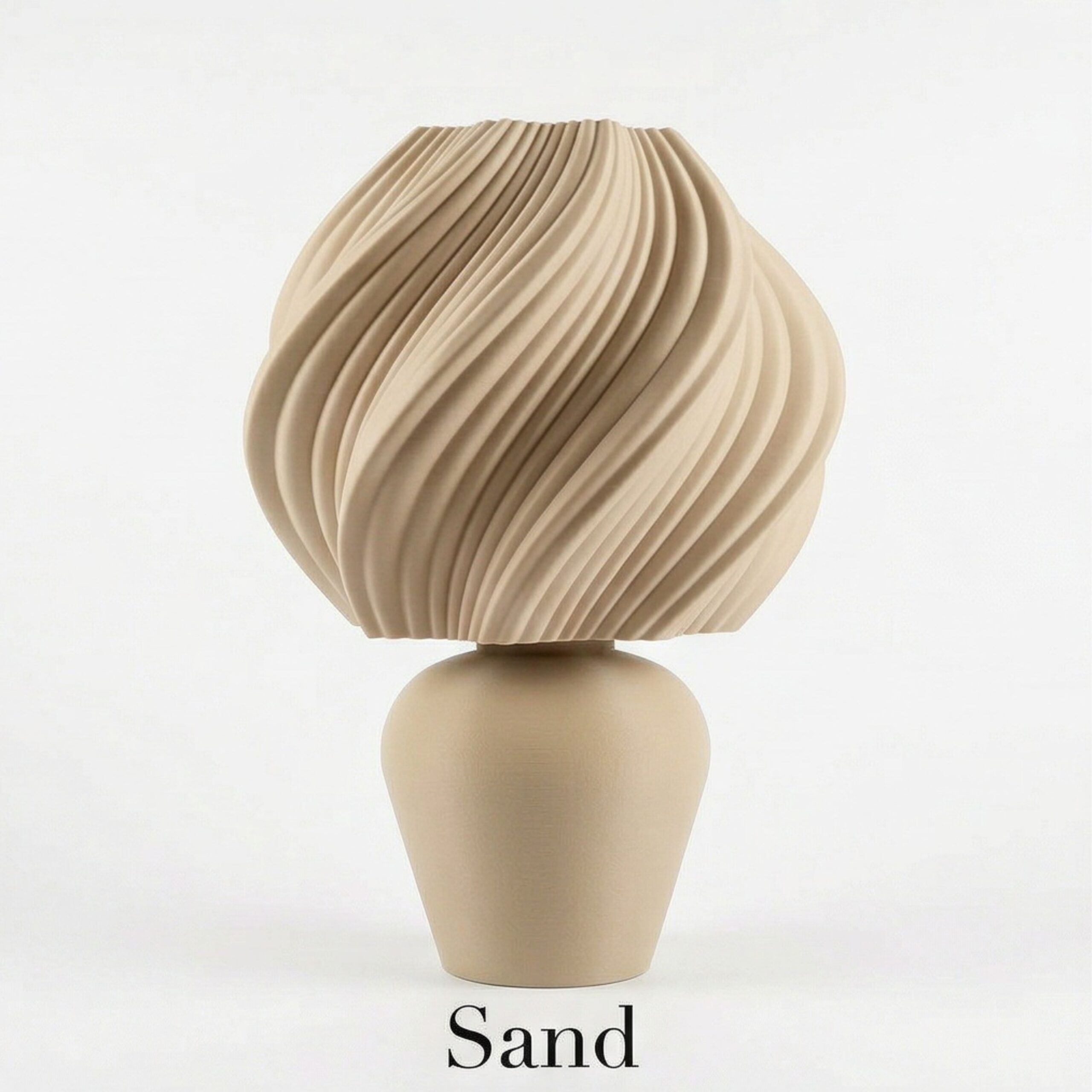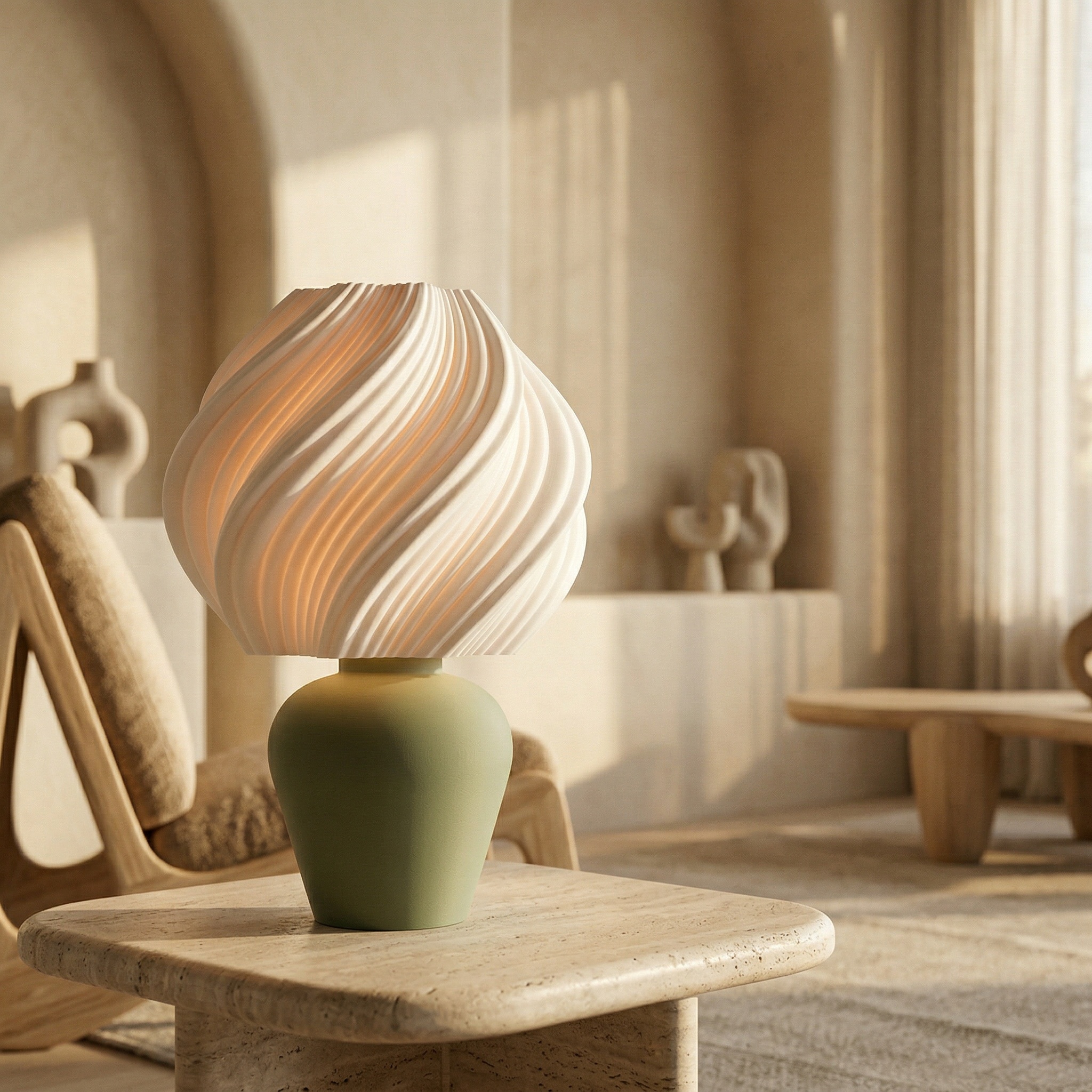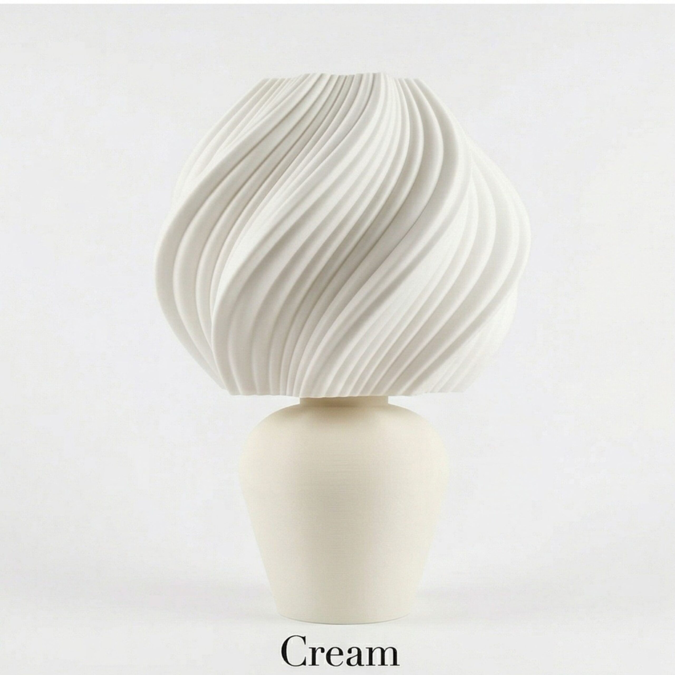 Inspired by modern European design and Japandi minimalism, the softly curved shade diffuses light into a gentle, enveloping warmth. The subtle fluted texture enhances depth and shadow play, while the solid base grounds the piece with balance and calm presence.