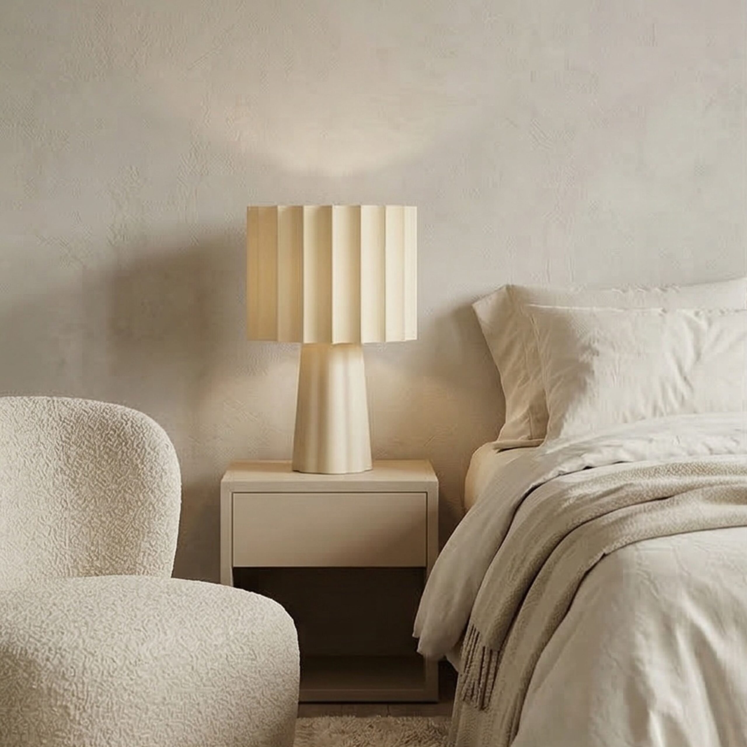 When illuminated, it emits a warm, atmospheric glow that transforms the environment into a calm and sophisticated setting. Designed for modern interiors that value simplicity, texture, and timeless elegance.
